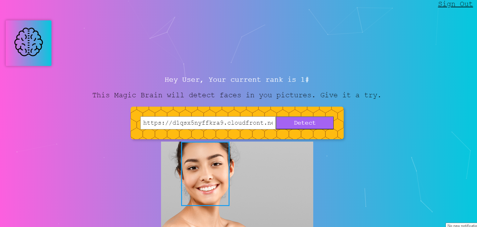 View ResumeUser can register and login, insert the required picture url and see if the API algorithm recognize a face inside the picture, in case there is a face, it will be marked by a square frame.